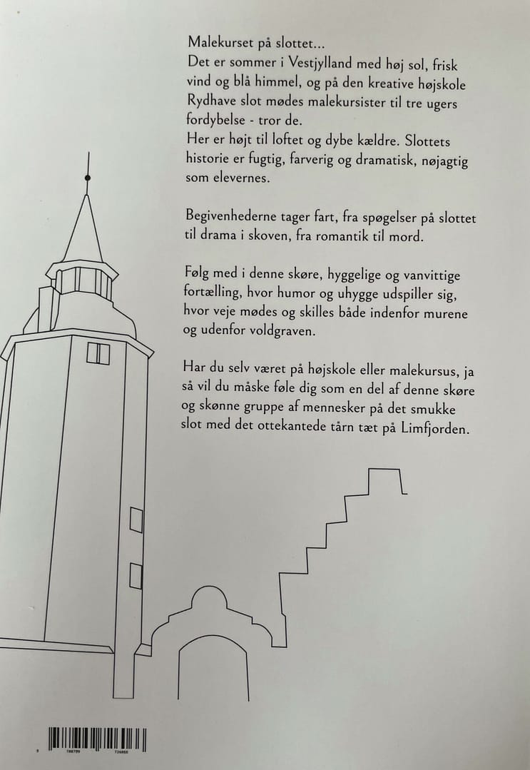Læs den helt nye roman om malerkurset på slottet, hvor et hyggeligt og helt stilfærdigt malerkursus, på alle måder pludselig udvikler sig i både humoristisk og dramatisk retning. Det rolige Vestjylland, er ikke altid så idyllisk som det ser ud og det smukke Rydhave Slot, byder på flere mysterier end gamle spøgelses historier og sagn fra gamle dage.